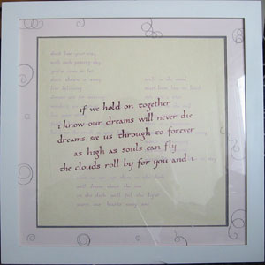 文字は失敗なくかけたけど、額装が決まらない。